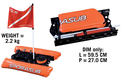 Устойчивый, многофункциональный плотик от знаменитой фирмы SPORASUB. Имеет 2 надувных буя. На носу плотика установлена катушка с 6-мм линем длиной 35 метров. В центральной части корпуса имеется прочный ящик, для хранения снаряжения и различных аксессуаров.