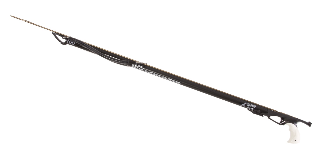Закрытоголовый анатомический арбалет Elite Sable Multi, 100 см с алюминиевым стволом черного или камуфляжного окраса. Гарпун диаметром 6,5 мм с зацепами типа "акульи плавники". Парная латексная тяга диаметром 18 мм.