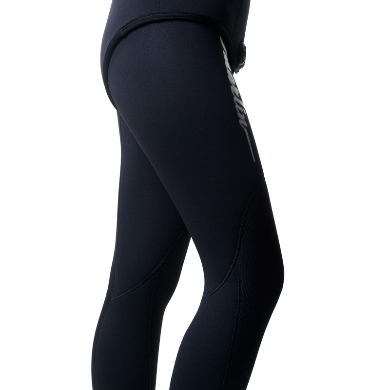Для изготовления этой модели используется мягкий, эластичный неопрен, фирмы Шейко, обладающий повышенной памятью пены. Наружное покрытие – черный нейлон, внутренняя поверхность – открытая пора. В брюках Long John в области груди используется неопрен меньшей толщины, что значительно облегчает дыхание. Обтюраторы на ногах, руках и шлеме, выполненные из неопрена smooth skin, предотвращают затекание воды вовнутрь костюма.