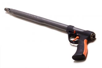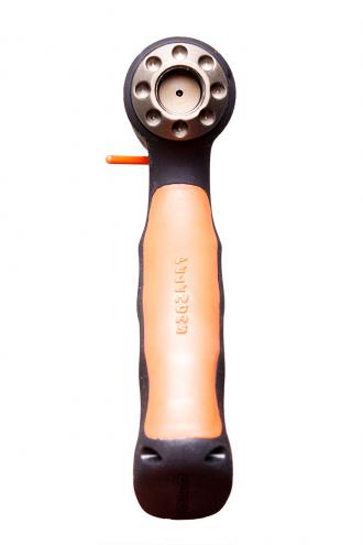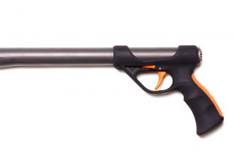 2. Удобная рукоять, с большим отверстием под указательный палец. Также на нее нанесено специальное покрытие от проскальзования с резиновой ярко-оранжевой накладкой с тыльной стороны, для удобства удержания. Внутри рукояти имеется герметичная полость, повышающая общую плавучесть ружья, а также предотвращающая эффект холодной рукояти. Отверстие в нижней части рукоятки для возможности крепления страховочного резинового кольца